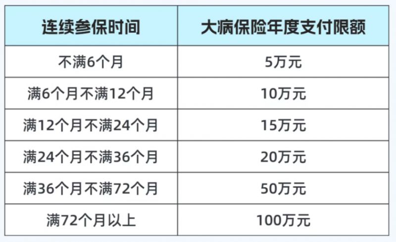 年度支付限额与参保人连续参加基本医保的时间挂钩。