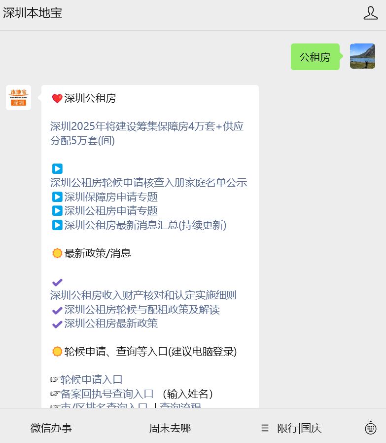 温馨提示:微信搜索公众号【深圳本地宝】,关注后在对话框回复【公租房】可获深圳公租房政策,怎么申请公租房,最新房源消息,入库名单公示,轮候排名及备案回执号查询,收入财产限额标准及实施细则等