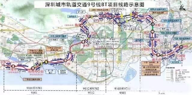 深圳地铁9号线,起点深圳湾公园站终点文锦站,总长25.33公里,呈东西走向,9号线共开通有22个车站。(预计2016年底建成)