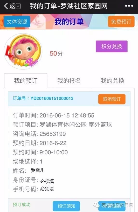 在预订的页面按提示填完资料并提交,即可生成积分增加、短信提示、订单详情等。