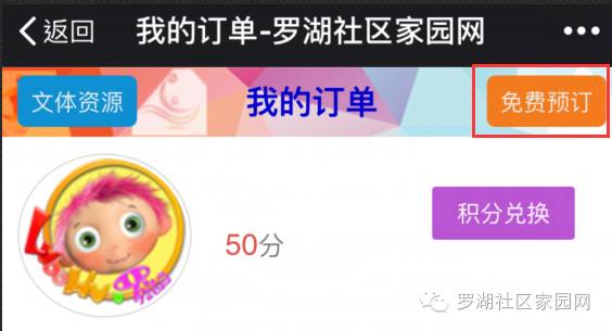 【方式一】在“我的订单”中,右上角选择“免费预订”,直接进入预订页面。