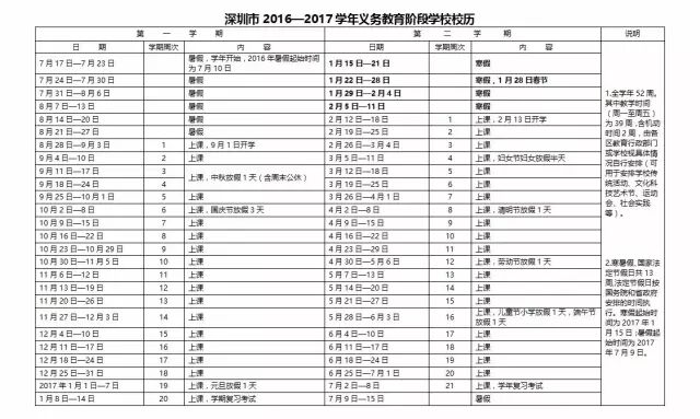 根据《深圳市2016—2017学年全日制义务教育学校校历》让无数学生万分期待的寒假终于出炉了!快来看看你们什么时候开始放假吧!