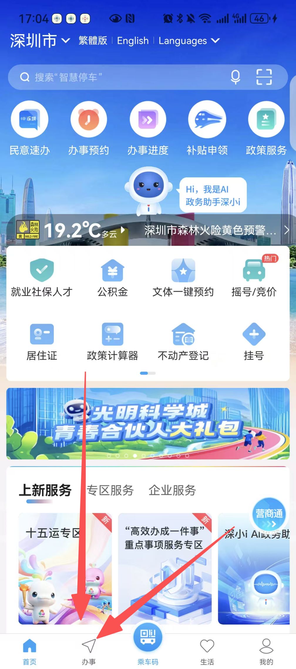 扫描下方二维码下载“i深圳”APP,打开APP,点击右下角【我的】进行登录;
