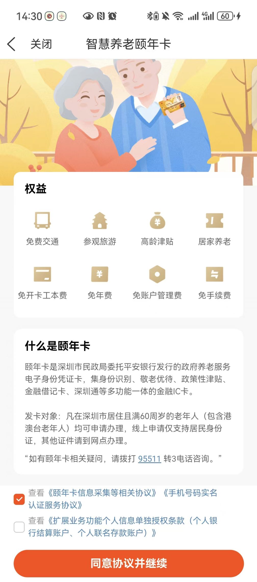 颐年卡是深圳市民政局委托平安银行发行的政府养老服务电子身份凭证卡,可以实现养老服务全领域应用。