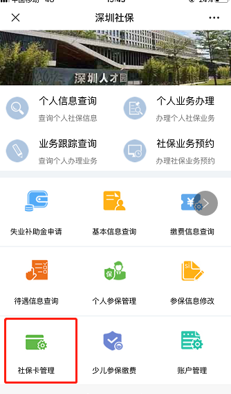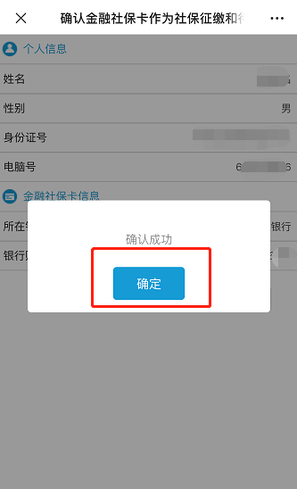 “确认”按钮,完成办理。此外,参保人也可以通过登录“深圳人社”微信公众号,依次选择“掌上办事”-“社会保险专区”-“金融卡管理”等步骤办理。