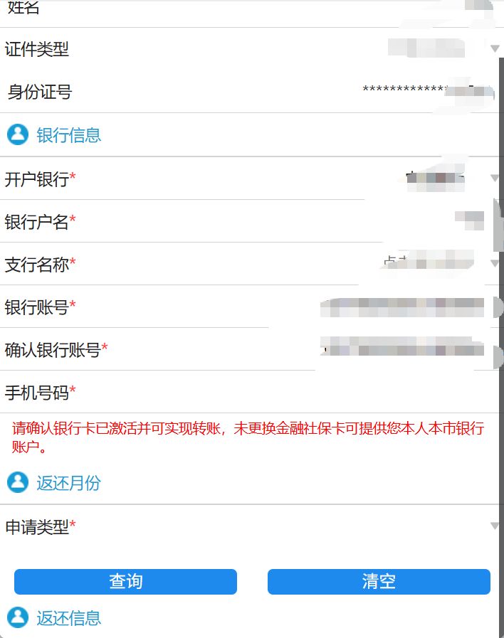 确认银行信息、选择开始月份和结束月份后可以看到返还信息,完成这一步骤后等待到账。