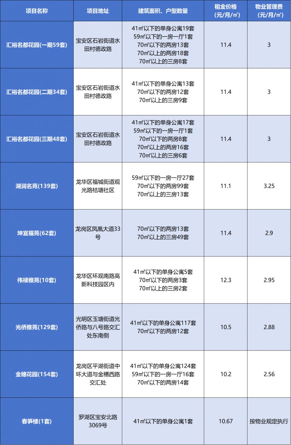 福田区2025年7月14日10:00-7月25日18:00配租汇裕名都花园(一、二、三期)、湖润名苑、坤宜福苑、伟禄雅苑、光侨雅苑、金穗花园、春笋楼等公共租赁住房项目共计636套住房,房源数量、租金等信息见正文。