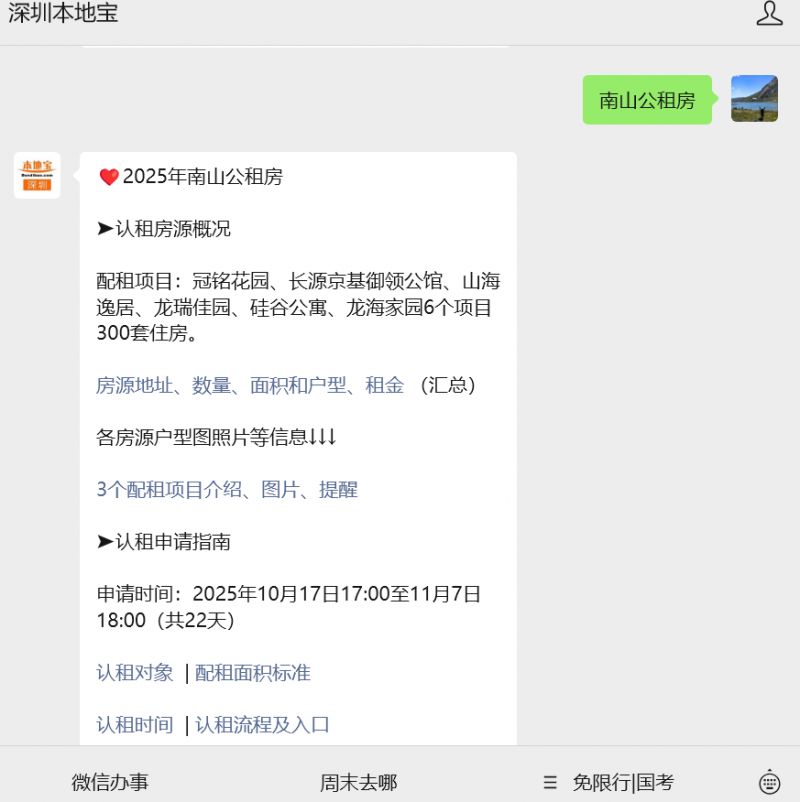 温馨提示:微信搜索公众号【深圳本地宝】,关注后在对话框回复【南山公租房】获取2025年南山公租房地址、数量、面积和户型、户型图及照片、周边交通和配套、项目特别提醒、租金价格、申请时间、申请入口及申请指南等信息