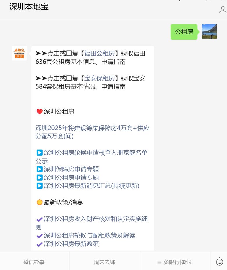 温馨提示:微信搜索公众号【深圳本地宝】,关注后在对话框回复【公租房】可获深圳公租房最新房源消息、轮候排名及备案回执号查询入口、轮候申请指南、收入财产限额标准、房/车/存款等哪些项目纳入计算