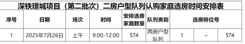 受台风天气影响,原定于2025年7月20日深铁璟城项目(第二批次)住房两房户型选房活动暂停延期。经审批同意,现决定恢复开展本批次住房的两房户型选房签约工作,现将有关事项通知如下: