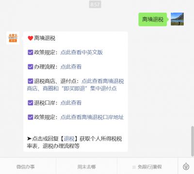 温馨提示:微信搜索公众号【深圳本地宝】,关注后在对话框发送【离境退税】获取深圳离境退税政策,办理流程,“即买即退”办理流程,离境退税商店、商圈和“即买即退”集中退付点,离境退税口岸地点等