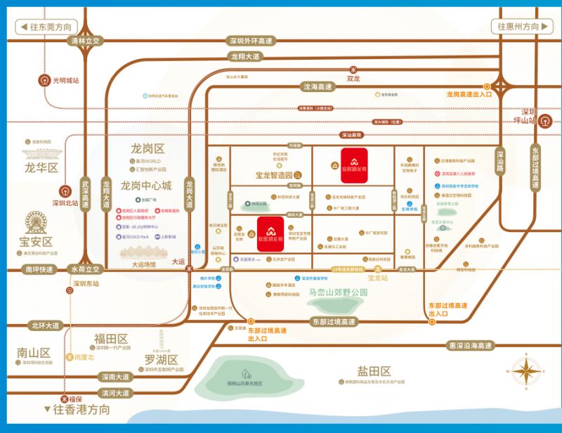 安居颢龙苑所在的宝龙科技城,总规划面积约 10.55 平方公里,作为国家级高新区和自主创新示范区,依托国家战略优势,正展现出蓬勃的发展潜力。这里聚焦信息与通信技术、人工智能物联网、生物技术、新能源、新材料等五大产业集群,汇聚了华为、比亚迪等行业龙头生态,拥有上百家国家高新技术企业(国高企业)。同时,还引进了中广核研究院重点实验室、方正微电子院士工作站等国家、省、市认证的多个创新平台,全力打造大湾区科技创新核心引擎,规划约40万高科技人才磁场与政策红利双重加持。