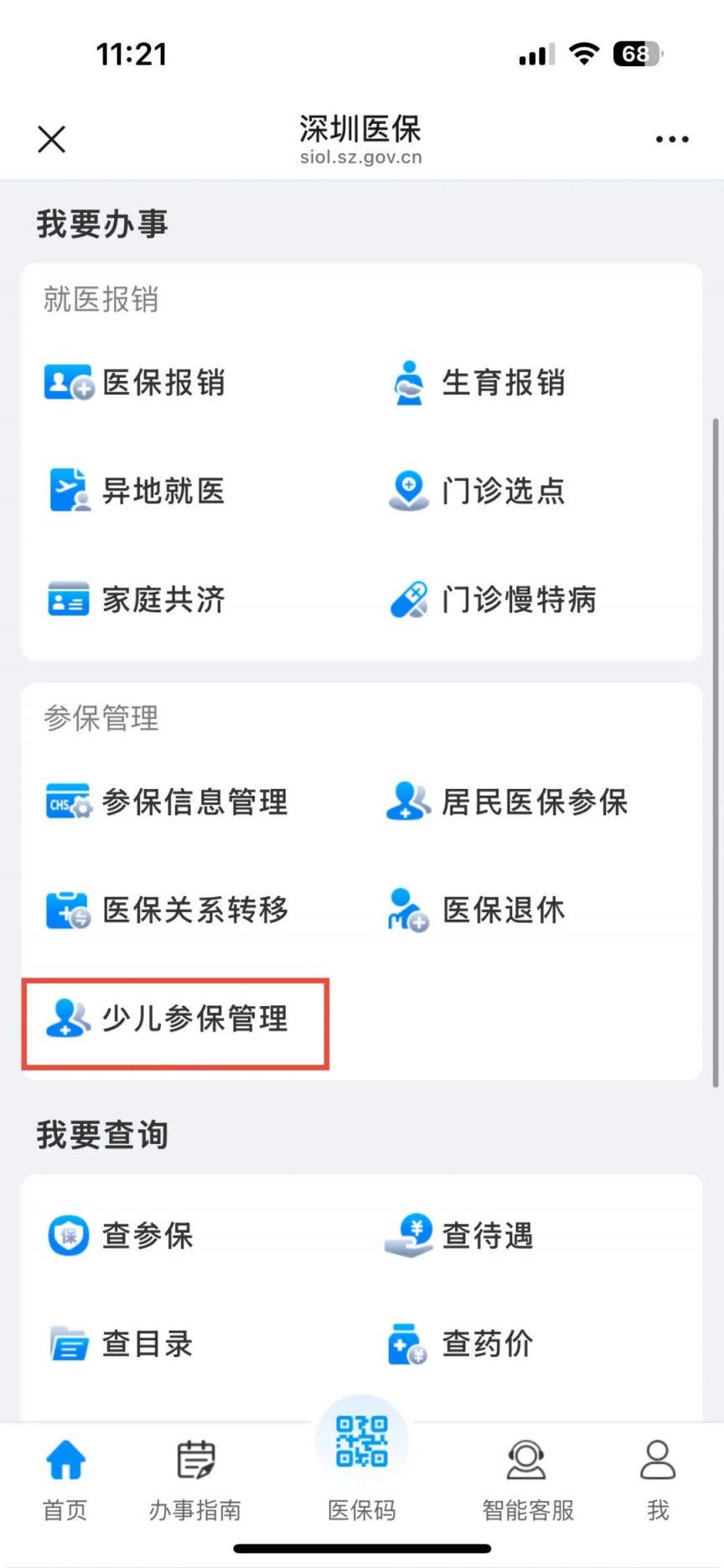 微信搜索或者扫描下方二维码进入“深圳医保”微信公众号;