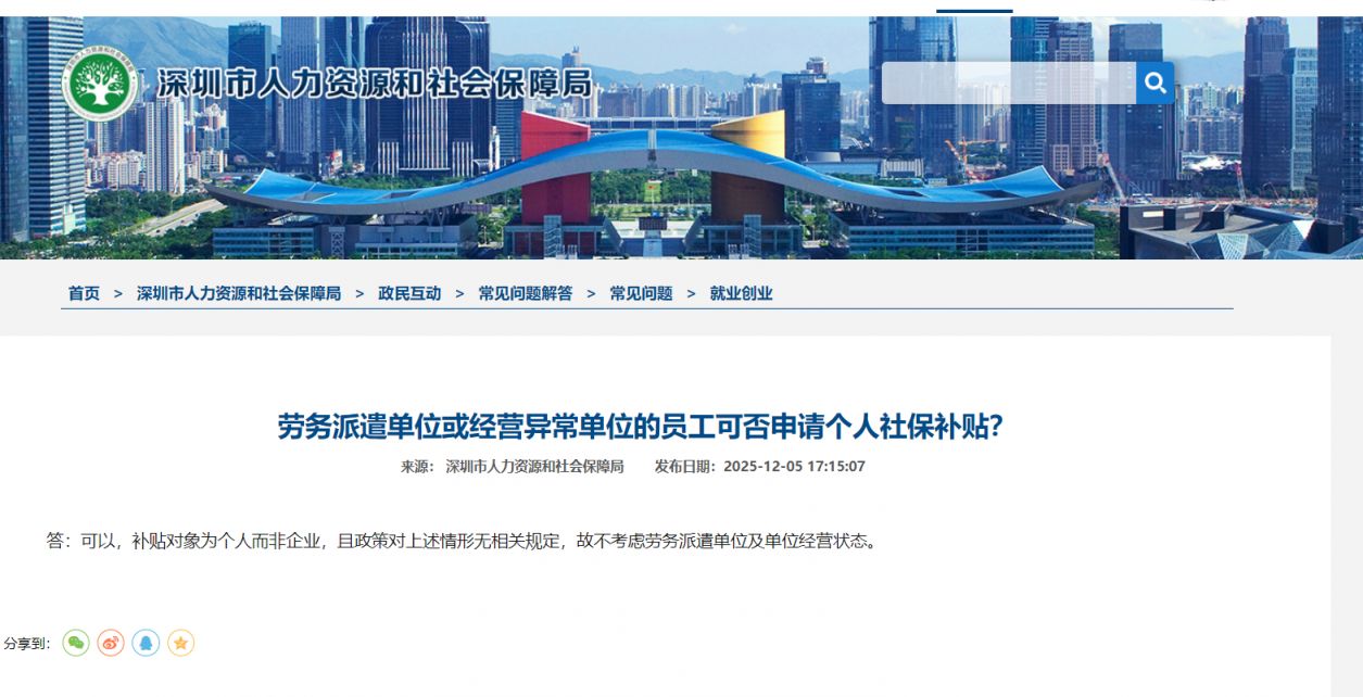 劳务派遣单位或经营异常单位的员工可否申请个人社保补贴?