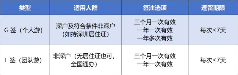 深圳可办港澳旅游个人签(G签)/团队签(L签),深户、持有效居住证的非深户可以优先个人签(含一年多次),其他非深户可办团队签(全国通办),自助机续签立等可取,窗口办理5-10个工作日。