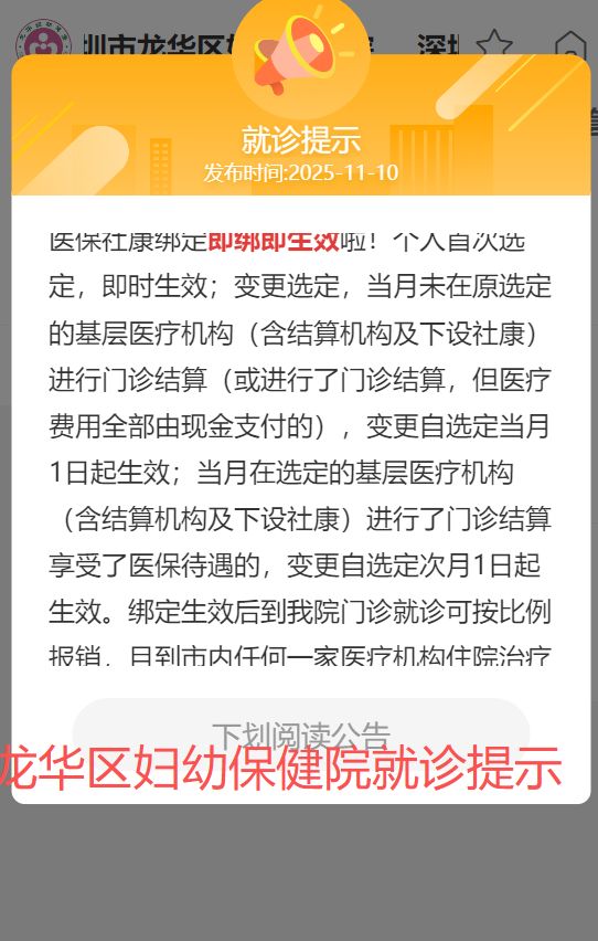 (来源龙华妇幼保健院的弹窗提示以及小编同事实操验证)