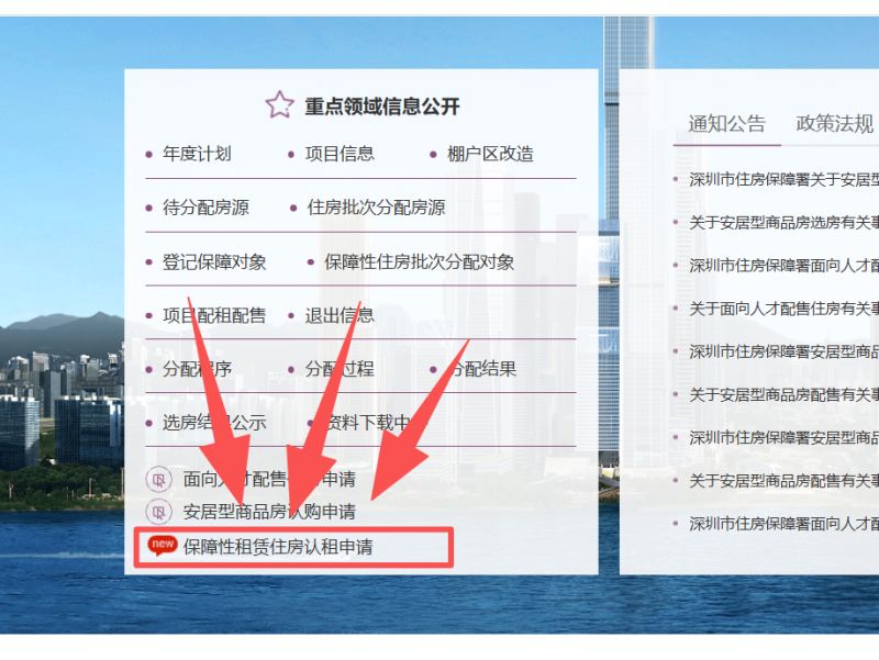 1.登录入口:深圳市住建局官网“住房保障服务”页面(https://zjj.sz.gov.cn/ztfw/zfbz/)→“保障性租赁住房认租申请” ;