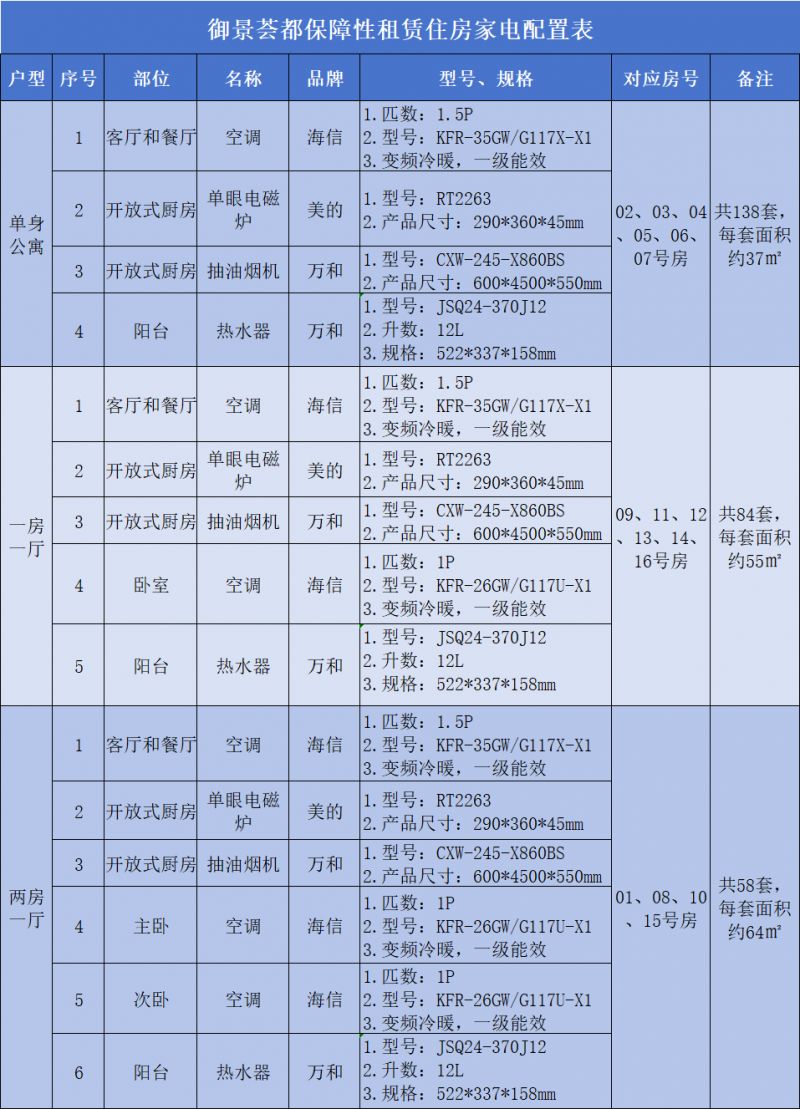 保租房户型面积:138套单身公寓建面约37㎡;84套一房50㎡;58套两房65㎡