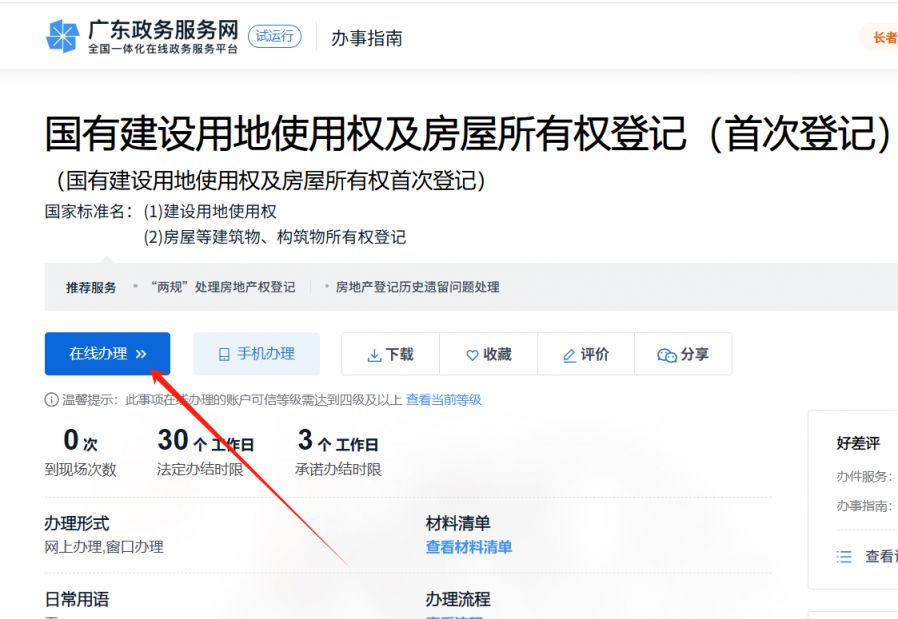⑴线上办理:申请人可在广东政务服务网(深圳)搜索“国有建设用地使用权及房屋所有权登记(首次登记)”,选择“国有建设用地使用权及房屋所有权首次登记”办理情形,在线申请办理。